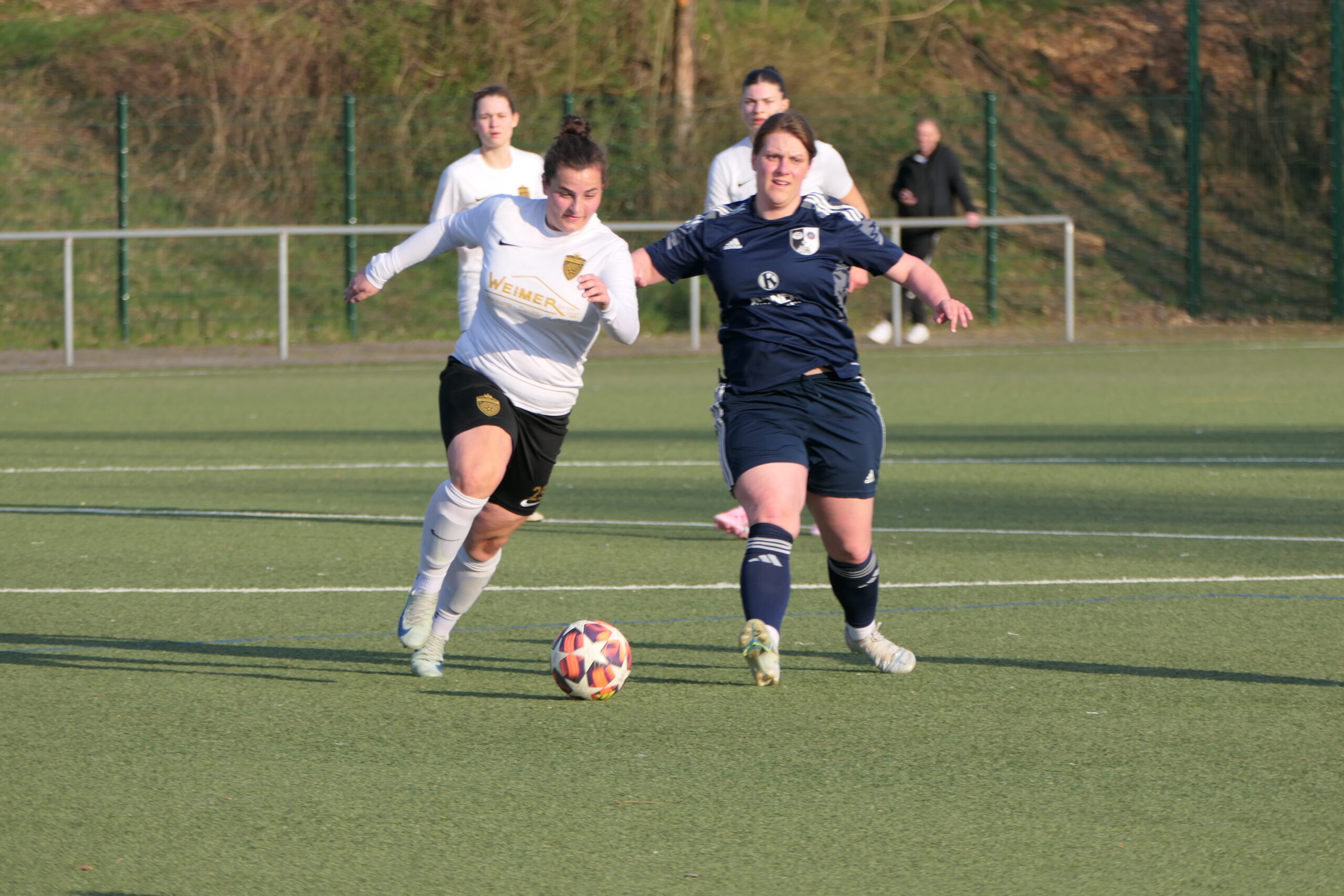 Es entwickelte sich von Beginn an ein sehr gutes, schnelles und ausgeglichenes Bezirksliga-Spiel mit Chancen auf beiden Seiten. Beim FFV Ingelheim hatten Nana-Awa Mamah (26.)und Janina Schiffer (15.) die dicksten Gelegenheiten, vergaben aber freistehend. Doch auch Lea Krupp im FFV-Tor musste zweimal in höchster Not retten, tat das mit Bravour und hielt so den 0:0-Halbzeitstand fest (16., 20.).